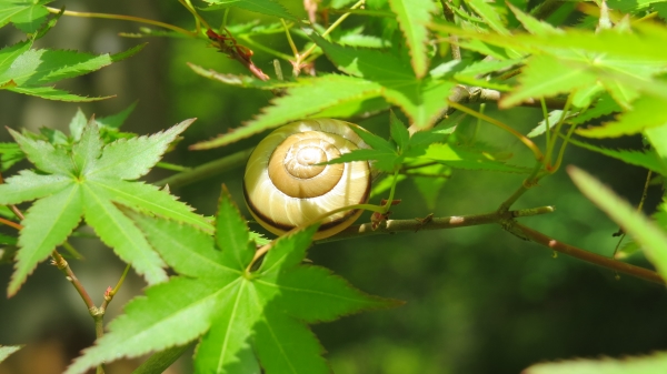 アジサイならぬモミジのカタツムリ梅雨らしい画像ですね♪
