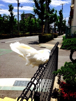 >頭膨らませてゆらゆらしてる姿、まるでどこかのジャングルにいるガラの悪いボウシインコの様です。