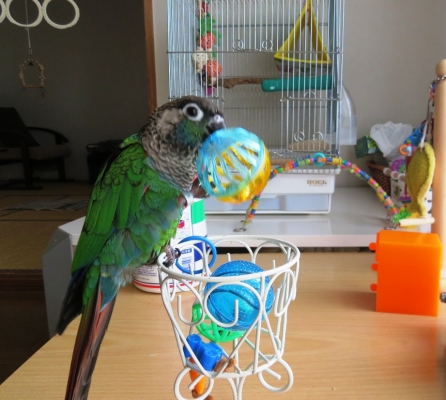 個々に教えても、どれもうまくいかない事が多いのに、最近は何でも1羽が出来る様になると、直ぐに他の仔達にも広まって楽と言えば楽ですが、問題なのは悪さやイタズラもすぐに皆で真似をすること(^^;