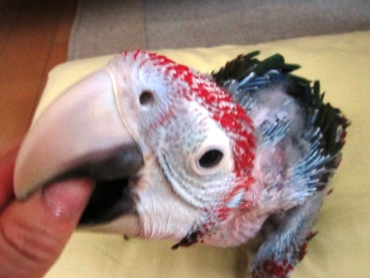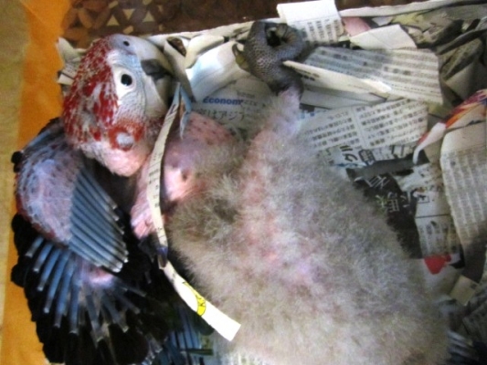 >コンゴウインコの雛っぴーは、うつ伏せ?に、ベターと寝るのが、面白いですね♪