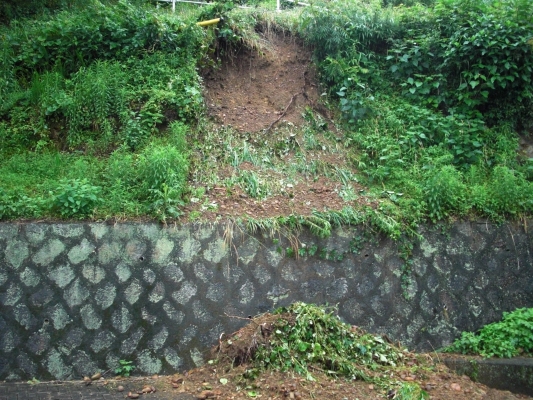 そしたら、家の前の駐車場の入口の横にある山の斜面が少しですが土砂崩れしてました(*゜д゜*)
