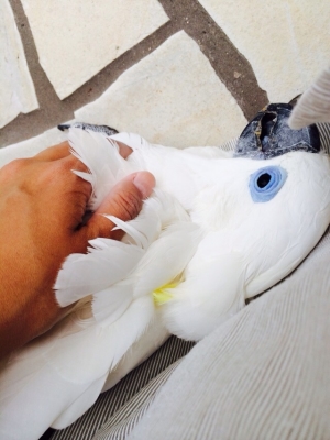 放鳥時、呼んでも来ない事が多い仔も、一羽を肩に乗せたりカキカキしてると、皆バサバサ寄ってきて我も我もと肩に登って来たり、3,4羽の頭がにょきにょき出てきたり…。