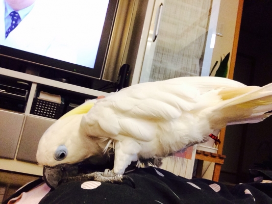 私は、毎日、朝は「たいよう、雪ちゃん、今日も元気? 大好きよ♪ 良い仔(←怪我しないでねって意味で)で居てね♪」 夜は「たいよう、雪ちゃん、大好きよ♪ また明日ね!」って言い聞かせています(^O^)←たいようは、籠に付けてある鈴を嘴で鳴らしながら、ホイ?って応えてくれます♪