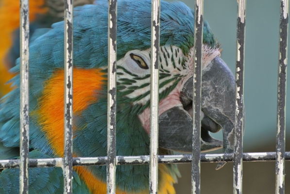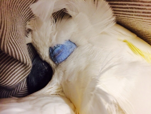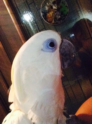 アオキコンゴウインコにおいては、既に白目向き気味?!