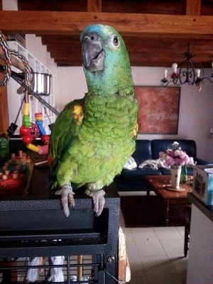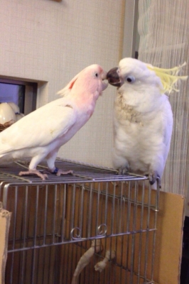 『おはよ』『ノアちゃんこんにちは』『おやっちゅみ』『バイバイ』『おいで』『ちーちゃん』『ええ子やね』『はいっ』は我家のインコ達の共通語。それに、それぞれの鳴真似も!何より困るのはコミドリコンゴウインコの鳴き真似。これだけは止めてほしい…。