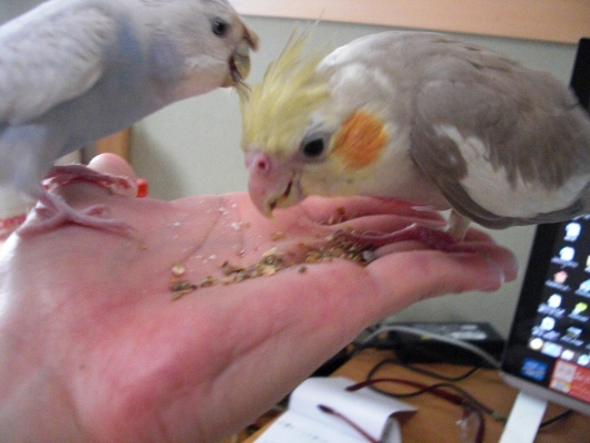 負けず嫌いのインコ達と飼い主のみなさん、こんばんは。