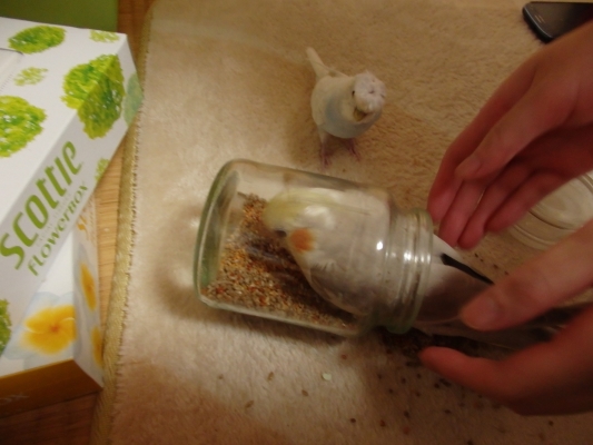 個々に教えても、どれもうまくいかない事が多いのに、最近は何でも1羽が出来る様になると、直ぐに他の仔達にも広まって楽と言えば楽ですが、問題なのは悪さやイタズラもすぐに皆で真似をすること(^^;