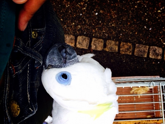 今日は全く生まれて初めて手に乗せた鳥がオオバタンと言う珍しい初体験の方とマコちゃんです(笑)