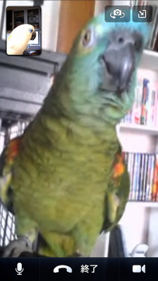 『おはよ』『ノアちゃんこんにちは』『おやっちゅみ』『バイバイ』『おいで』『ちーちゃん』『ええ子やね』『はいっ』は我家のインコ達の共通語。それに、それぞれの鳴真似も!何より困るのはコミドリコンゴウインコの鳴き真似。これだけは止めてほしい…。