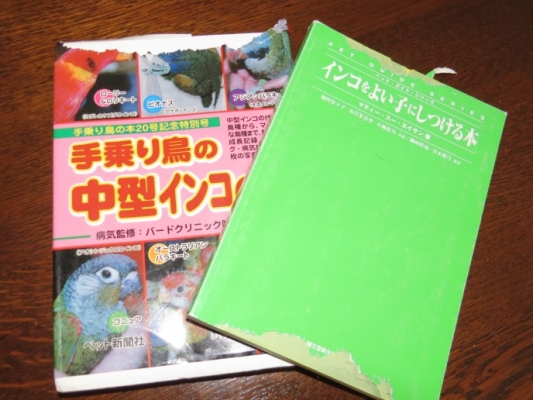 私もネットで『大型インコの本』を注文しましたが、一緒に『中型インコの本』も買っちゃいました〜ヾ(▽´)ツヾ(`▽)ゞ