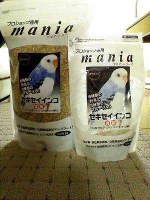 そうそう、マニアシリーズの大型インコ用、我家のルリも食べています!
