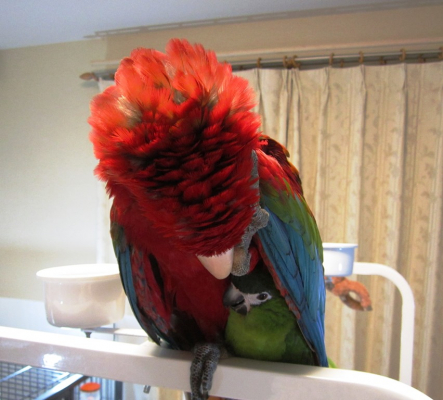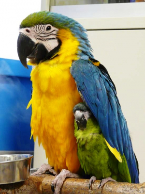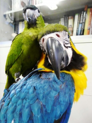 ルリコンゴウのあ〜ちゃんが肩にコミドリコンゴウを乗せてる姿は