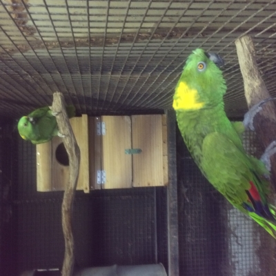 『おはよ』『ノアちゃんこんにちは』『おやっちゅみ』『バイバイ』『おいで』『ちーちゃん』『ええ子やね』『はいっ』は我家のインコ達の共通語。それに、それぞれの鳴真似も!何より困るのはコミドリコンゴウインコの鳴き真似。これだけは止めてほしい…。