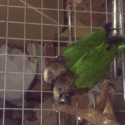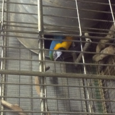飛んで出てきたといえば、生体展示かな?のケージからビセイインコちゃんが飛んで逃げちゃいまして。