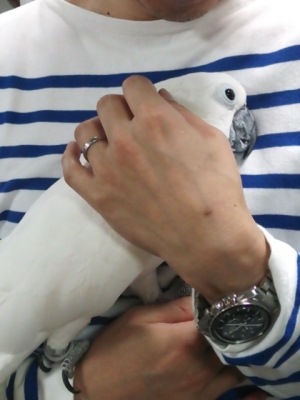 モモちゃんは機嫌が悪くて噛み付くわ暴れるわ叫ぶわ大変。コガネちゃんは大人しく撫でさせてくれました。タイちゃんはテンションがオーバーしちゃって大暴走。冠羽を全力で立てて歌いながら踊ってました。もはや触るどころじゃない…。