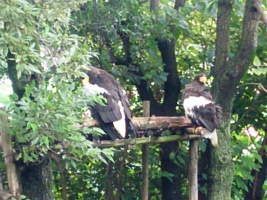 上野動物園のその4のポスターオオハシの隣りはサトウチョウのペアーかな?