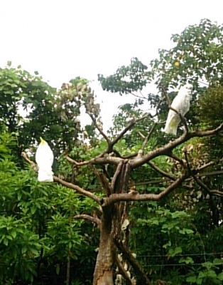 バードホールのキバタンは放し飼い?屋根なし?大きな自然木に止まるキバタンって良いなぁ〜(*^_^*)