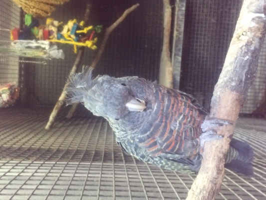 キエリボウシは二羽同時に禽舎に入れました、メス
