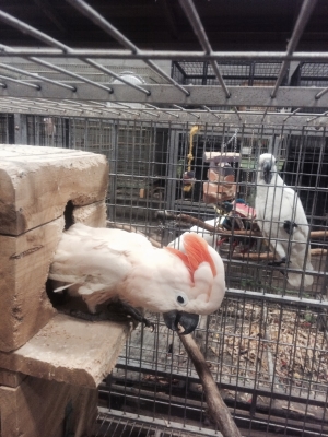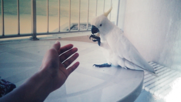 ペットショップのタイハクオウムやルリコンゴウインコが、私の指先を肉厚のある舌で、触れてくるのは、何をしているのかしら? ひょっとして、味見されているのかも…(^_-)