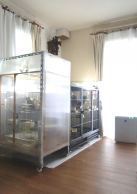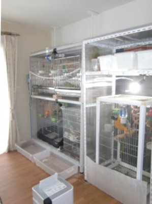 飼主の私より、家にいる時間がずっとずっと多い我家のやんちゃ坊達の為に、一番陽当たりが良く明るいリビングの一部約10帖弱を鳥部屋にしちゃいました。