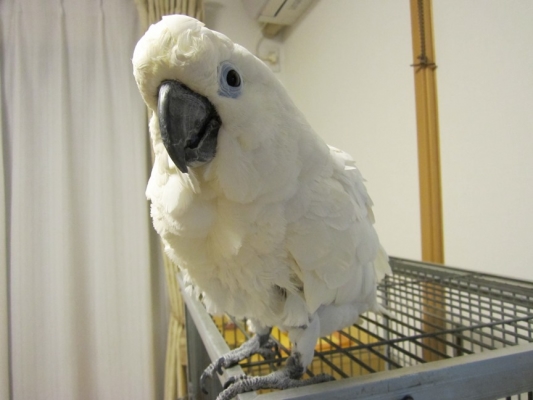 シロちゃん、可愛い~♪ 素敵な鳥部屋ですね(^_-)