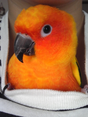 放鳥時、呼んでも来ない事が多い仔も、一羽を肩に乗せたりカキカキしてると、皆バサバサ寄ってきて我も我もと肩に登って来たり、3,4羽の頭がにょきにょき出てきたり…。