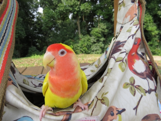 放鳥時、呼んでも来ない事が多い仔も、一羽を肩に乗せたりカキカキしてると、皆バサバサ寄ってきて我も我もと肩に登って来たり、3,4羽の頭がにょきにょき出てきたり…。