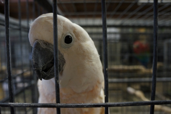 近所のペットショップで毛引き(自咬性)のオオバタンを見掛けました。男の子で、少なくとも五年以上其処にいまs