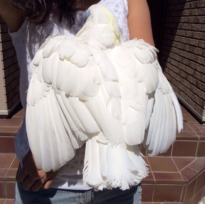 放鳥時、呼んでも来ない事が多い仔も、一羽を肩に乗せたりカキカキしてると、皆バサバサ寄ってきて我も我もと肩に登って来たり、3,4羽の頭がにょきにょき出てきたり…。