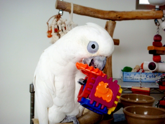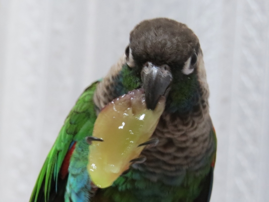 『おはよ』『ノアちゃんこんにちは』『おやっちゅみ』『バイバイ』『おいで』『ちーちゃん』『ええ子やね』『はいっ』は我家のインコ達の共通語。それに、それぞれの鳴真似も!何より困るのはコミドリコンゴウインコの鳴き真似。これだけは止めてほしい…。