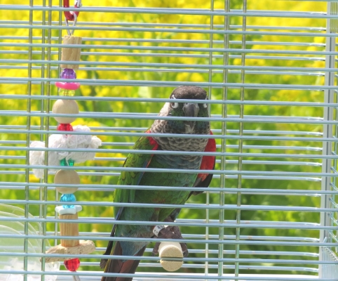 『おはよ』『ノアちゃんこんにちは』『おやっちゅみ』『バイバイ』『おいで』『ちーちゃん』『ええ子やね』『はいっ』は我家のインコ達の共通語。それに、それぞれの鳴真似も!何より困るのはコミドリコンゴウインコの鳴き真似。これだけは止めてほしい…。