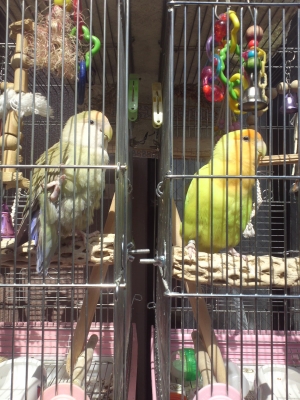 我家のインコ達、種類も性別もサイズもバラバラ…。なのに、常にお互いに妙なライバル心がある様で(^^)