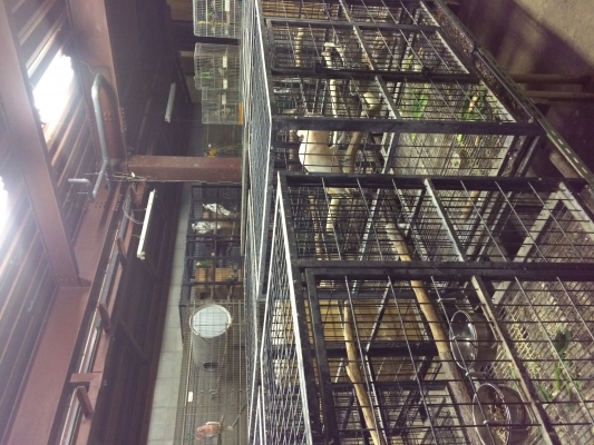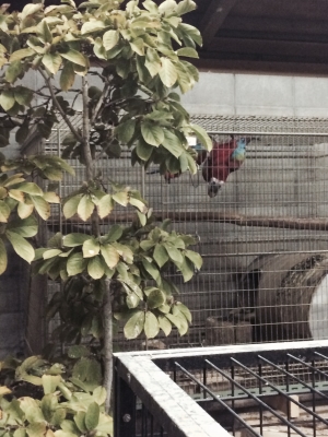 夕方ジャングルの掃除をしていると、ヨウムのオスの前を掃除して