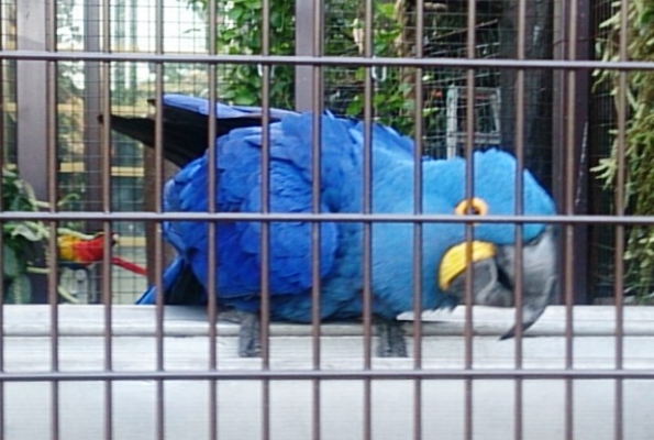 相変わらず、超見難い、ヤシオウムケージの前網…。
