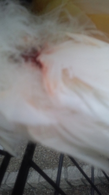 血だまを取り除き確認するとどうも羽軸の太い新しい羽をぬいたようでした