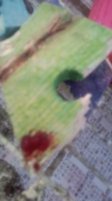 夕方掃除をしてたらオモチャの残骸に出血の後が…(画像貼付)