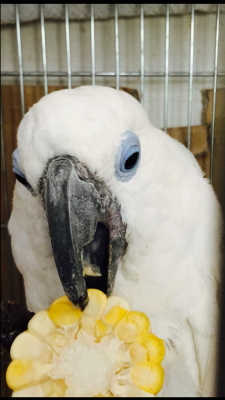 最近は夕食前の放鳥中にシードをあげているのですが、そのせいか、時々大好きなトウモロコシを残します。
