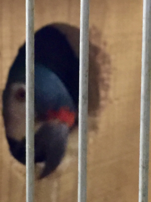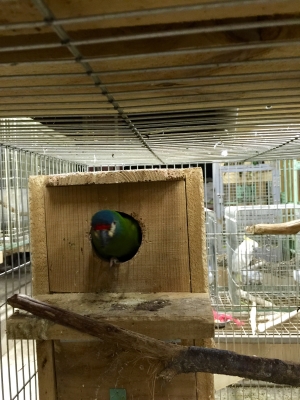 ヒオウギインコのオスが巣箱に入っていました、
