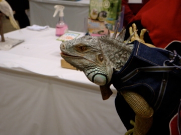 その時もイグアナ?トカゲ?を抱っこした方がいらしたんですが、なんとその子はデニムのお洋服を着ていました!