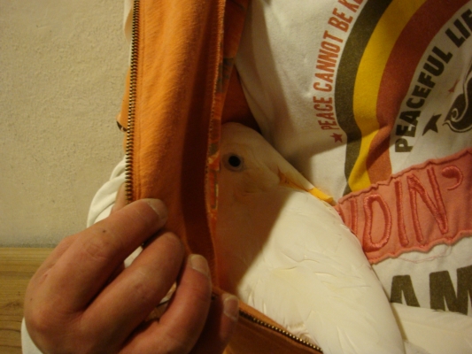 放鳥時、呼んでも来ない事が多い仔も、一羽を肩に乗せたりカキカキしてると、皆バサバサ寄ってきて我も我もと肩に登って来たり、3,4羽の頭がにょきにょき出てきたり…。