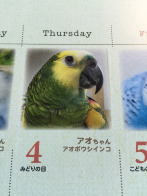 今月末でアオボウシインコのアオちゃんお迎え