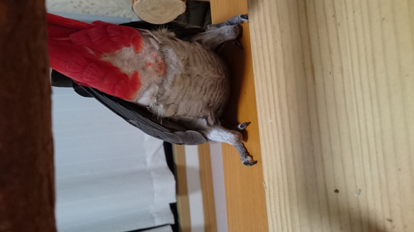 リリィはケージではコウモリの用にぶら下がっていますよ。