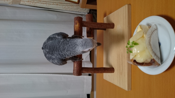 私はパンの欠片もあげない主義なので、りのちゃんは私が食べるのを眺めるのみです。