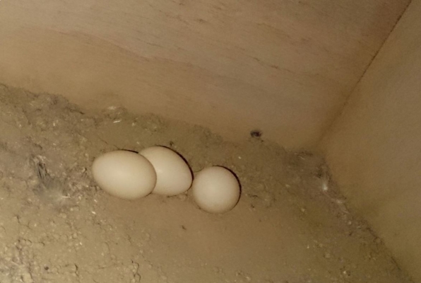 さっき、ムックが巣箱から出てきた隙に、ちょこっと卵を撮ってみました。