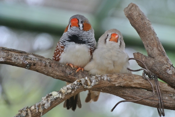 > ♀は自分で食べるというより、ちゃっかり餌入れの前で♂から口移しで餌をもらって食べています。