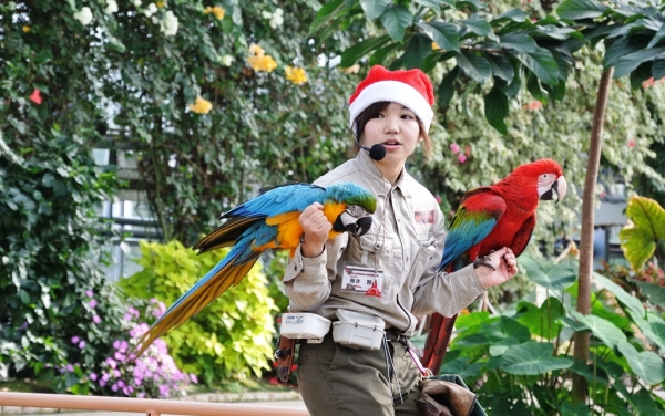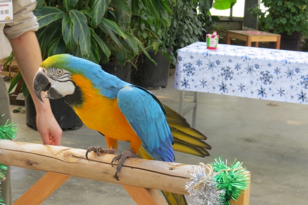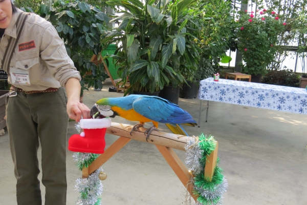 バードショウでは、コンゴウインコのフライトと、オオバタンのフライトに大はしゃぎ