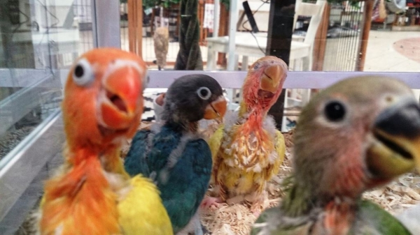 我家のインコ達、種類も性別もサイズもバラバラ…。なのに、常にお互いに妙なライバル心がある様で(^^)