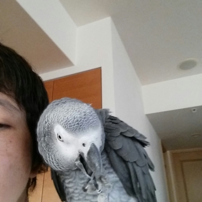 『おはよ』『ノアちゃんこんにちは』『おやっちゅみ』『バイバイ』『おいで』『ちーちゃん』『ええ子やね』『はいっ』は我家のインコ達の共通語。それに、それぞれの鳴真似も!何より困るのはコミドリコンゴウインコの鳴き真似。これだけは止めてほしい…。