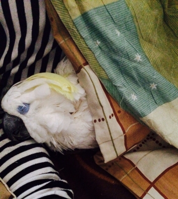 『おはよ』『ノアちゃんこんにちは』『おやっちゅみ』『バイバイ』『おいで』『ちーちゃん』『ええ子やね』『はいっ』は我家のインコ達の共通語。それに、それぞれの鳴真似も!何より困るのはコミドリコンゴウインコの鳴き真似。これだけは止めてほしい…。