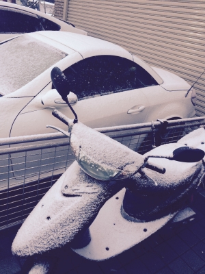 初日の出を見ようかと、早起きして屋上に上がってみましたが、ちょうどいい場所に雲が邪魔していて、よく見れませんでした。ザンネン。